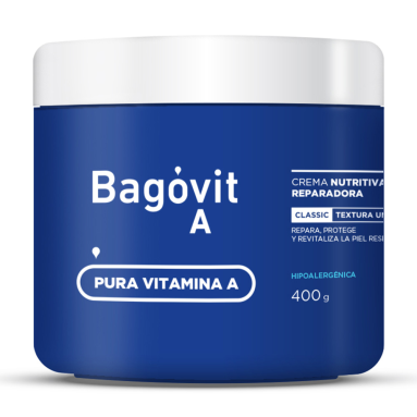 La Crema Nutritiva Reparadora Hipoalergénica Bagóvit Classic tiene una textura rica y untuosa, altamente nutritiva que actúa en profundidad, permitiendo la natural regeneración celular. Las propiedades nutritivas de la Vitamina A la hacen ideal para uso en períodos propensos a la formación de estrías como el embarazo y la adolescencia. Contribuye a mejorar el aspecto de la piel dañada, por ejemplo cicatrices, luego de la curación de quemaduras y grietas del pezón. Mantiene la integridad de la estructura de la piel incrementando la producción de colágeno e induciendo la síntesis de compuestos responsables de retener agua en la piel. Su acción reparadora restablece la elasticidad junto con la luminosidad y suavidad.