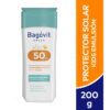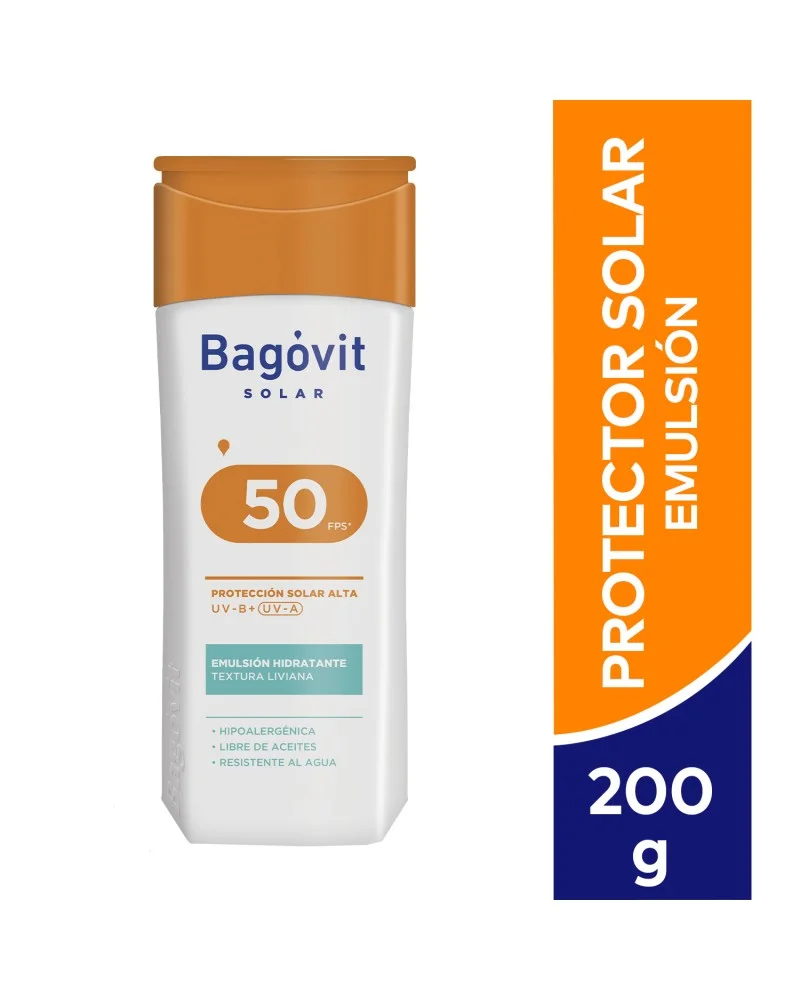 El Protector Solar Family Care Bagóvit con Factor de Protección Solar 50 es una emulsión hidratante corporal y facial ideal para pieles moderadamente sensibles. Su fórmula con Vitamina A hidrata la piel, mientras que la Vitamina E actúa como antioxidante previniendo el envejecimiento prematuro de la piel. Es hipoalergénico y no comedogénico. Sus filtros de amplio espectro UVB y UVA ayudan a prevenir las quemaduras solares, minimizando el riesgo de daños a largo plazo provocados por los rayos UV.
