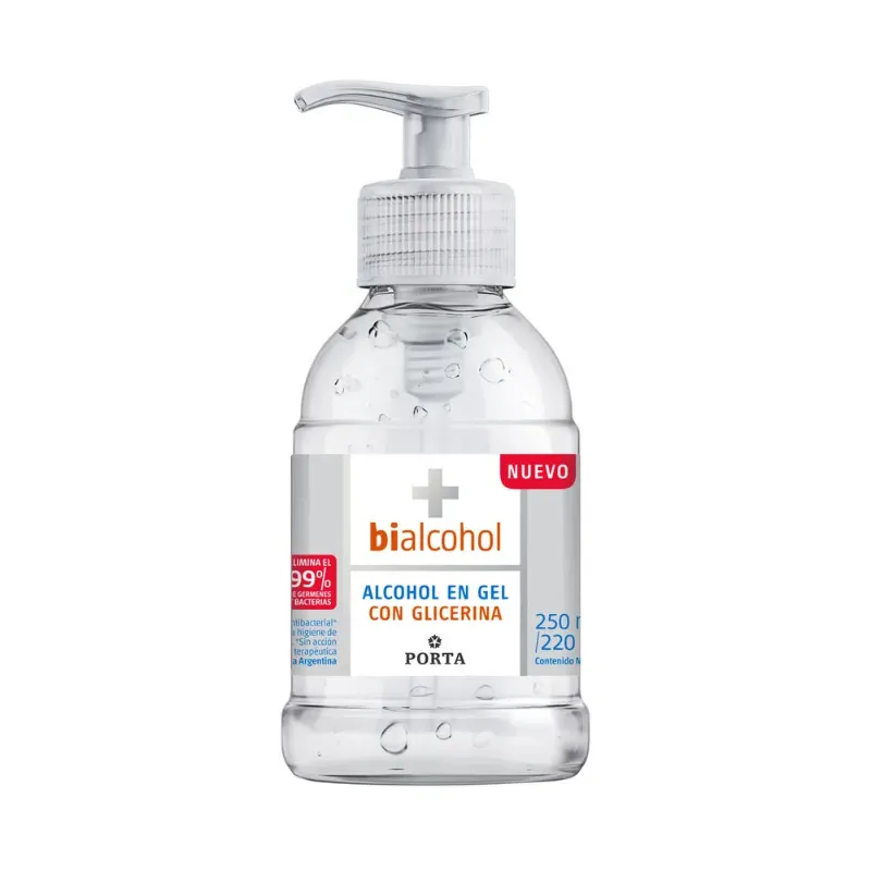 Elimina el 99.9% de gérmenes y bacterias con el Alcohol en Gel Bialcohol. Su fórmula al 70% de alcohol asegura una desinfección eficaz, mientras que la glicerina incorporada protege y suaviza tu piel, evitando la resequedad comúnmente asociada a otros alcoholes.