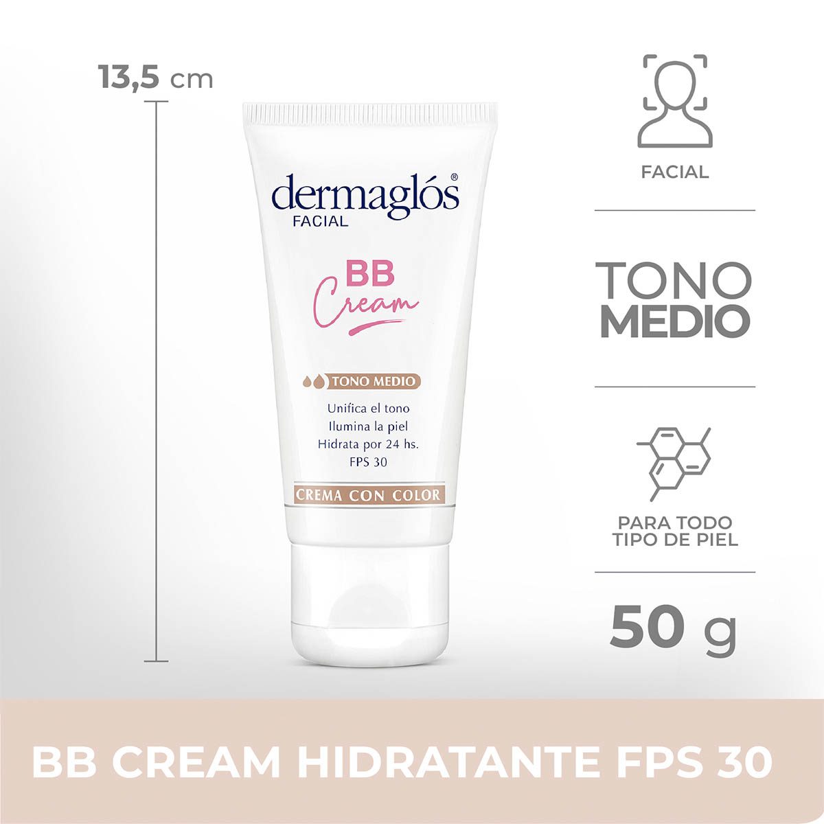 Dermaglós BB Cream con FPS 30 está especialmente formulada para unificar el tono de la piel, dejándola hidratada, iluminada y protegida. Gracias a la combinación de sus componentes, proporciona un tono natural y una excelente humectación a la piel, otorgándole mayor elasticidad y protegiéndola de los signos de envejecimiento prematuro. Brinda suavidad sin efecto graso. Tono Medio.