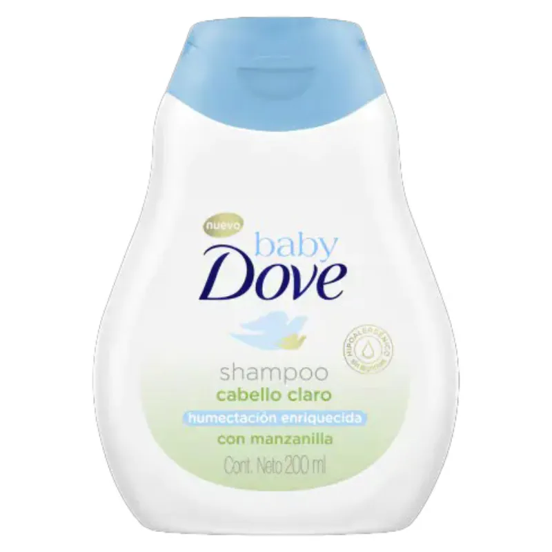 Baby Dove Shampoo Cabello Claro enriquecido especialmente con manzanilla.