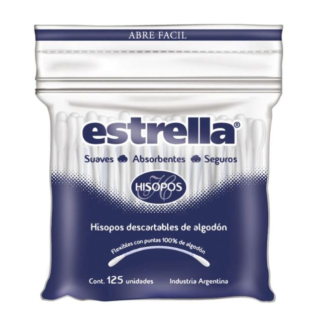 ESTRELLA BOLSA ZIPPER x 125 Hisopos