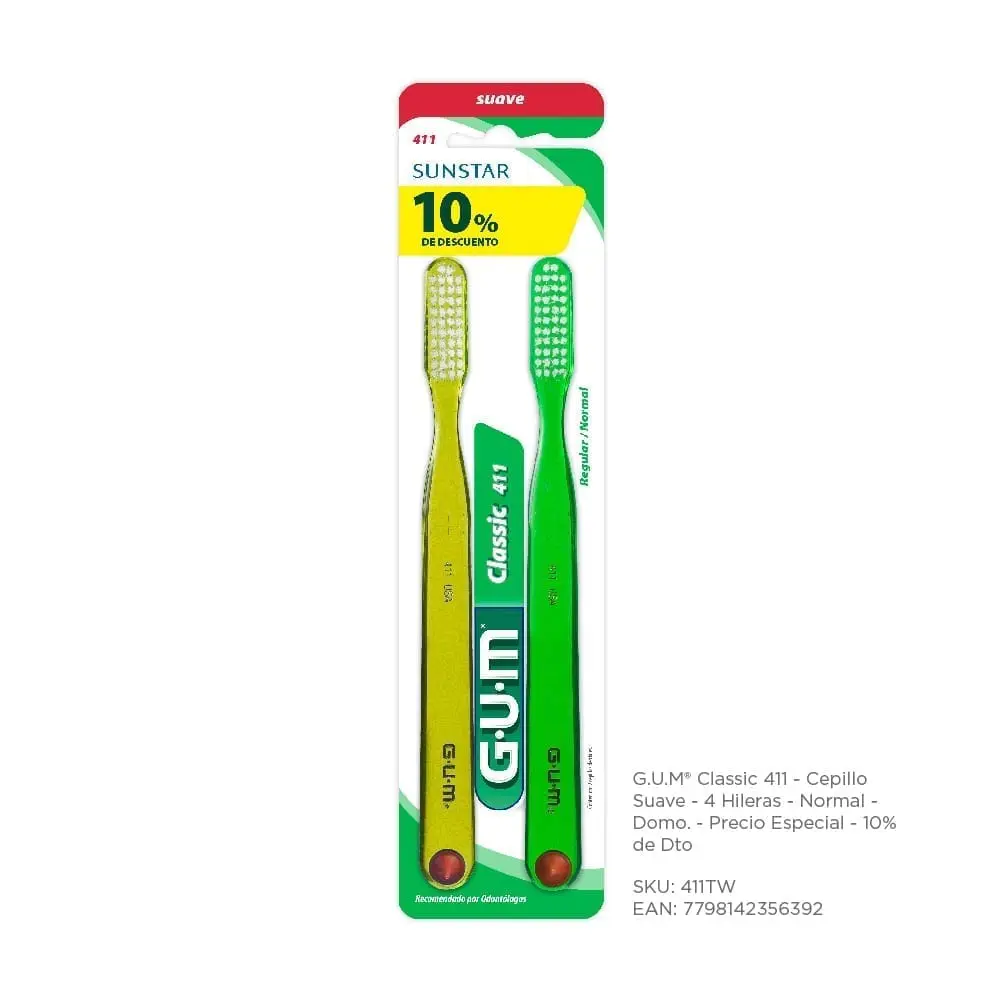 GUM 411 CEPILLO DE DIENTES CLASSIC TWIN PACK